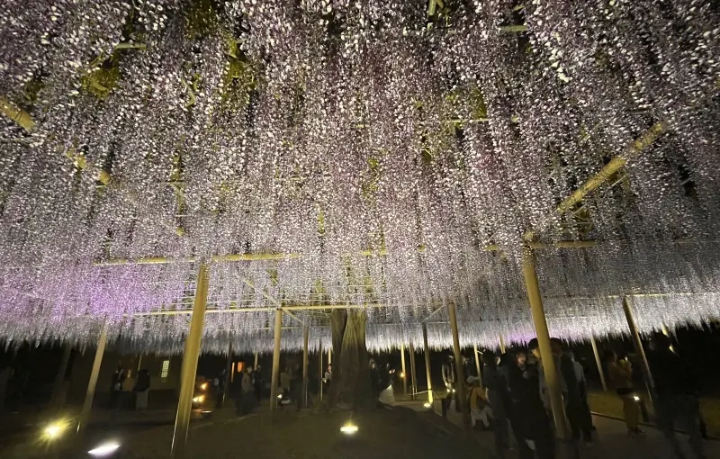 昼には気づかなかった藤棚の荘厳さや、やさしい香りがさらに癒しを与えてくれました。